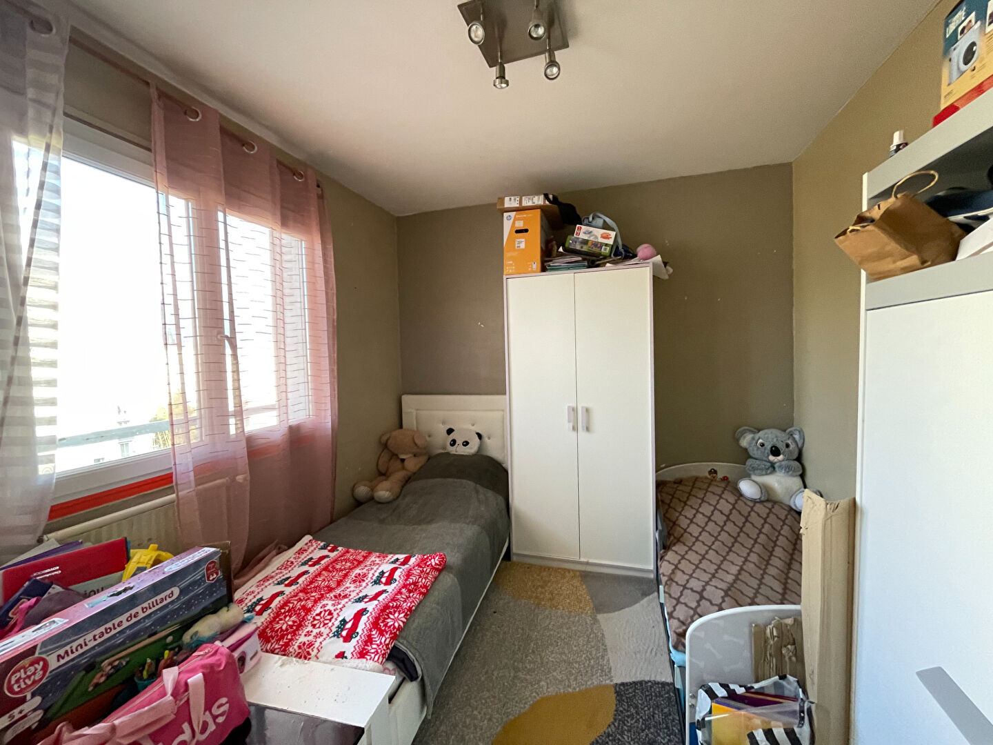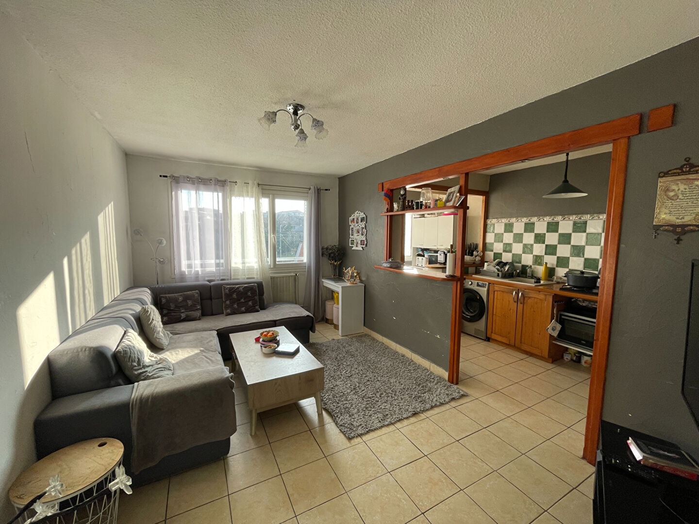 T3 de 52 m² vendu loué sur Bourg Les Valence, Limite Valence proche de toutes les commodités, au 4 ème étage, composé d’une entrée avec placard, une pièce à vivre avec cuisine ouverte, 2 chambres, une salle d’eau, wc séparé.